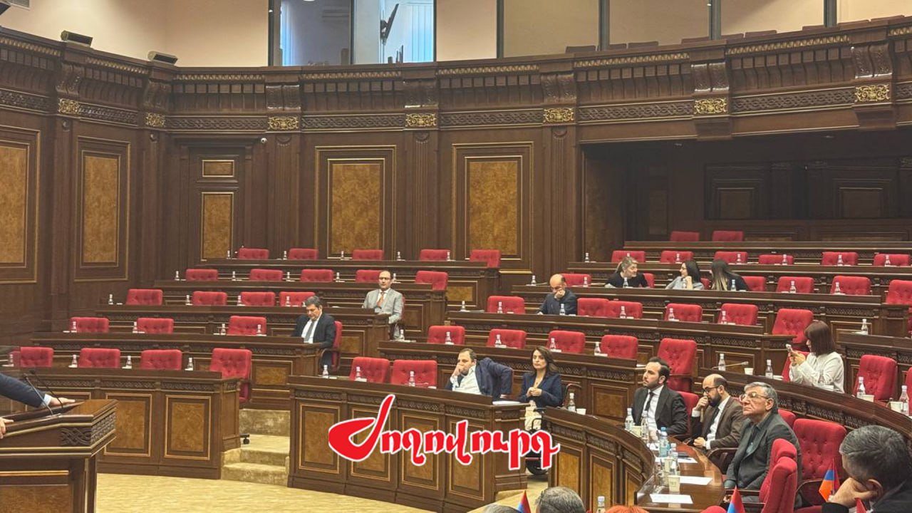 ArmLur.am-ի տեսախցիկը ֆիքսեց, որ ՔՊ 69 անդամ ունեցող խմբակցությունից 21 պատգամավոր է դահլիճում: 48 պատգամավորներ բացակայում են, թեև առավոտյան դահլիճը լեփ լեցուն էր: