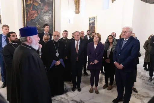Գերմանիայի նախագահ Շտայնմայերը, շնորհակալություն հայտնելով Նորին Սրբություն Գարեգին Երկրորդ Կաթողիկոսին քրիստոնեական հնագույն սրբավայր այցելելու հնարավորության համար, կարևորեց կրոնների դերակատարությունը ժողովրդների կյանքում խաղաղության և համերաշխության ապահովման գործում։ Պրն․ Շտայնմայերը հավաստիացրեց Հայոց Հայրապետին, որ իր միջնորդական ջանքերը կգործադրի ի նպաստ տարածաշրջանում վերջնական խաղաղության հաստատման։