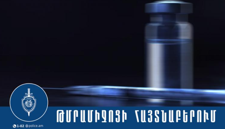 Մարտի 31-ին Քրեական ոստիկանության Երևան քաղաքի վարչության ծառայողները ապօրինի թմրամիջոց պահելու և օգտագործելու կասկածանքով մայրաքաղաքի Արմենակյան փողոցում ձերբակալել և վարչություն են տեղափոխել 25-ամյա մի երիտասարդի։