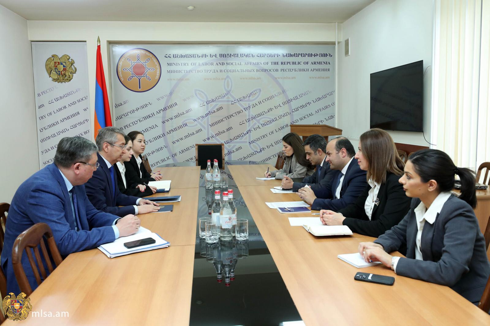 Հանդիպման ընթացքում երկուստեք ընդգծվել է նաև «Հայաստան-Ղազախստան տնտեսական համագործակցության միջկառավարական հանձնաժողովի» 10-րդ նիստի արձանագրության շրջանակում ստանձնած համատեղ աշխատանքների դերը։ Այս համատեքստում անդրադարձ է կատարվել նիստի «Աշխատանքի և սոցիալական պաշտպանության ոլորտում համագործակցության խորացման մասին» կետի շրջանակում սոցիալական պաշտպանության ոլորտի տարբեր իրավակարգավորումների, մասնավորապես՝ աշխատաշուկայի, զբաղվածության, ինչպես նաև աշխատանքային իրավունքի ուղղություններով տեղեկատվության փոխանակման գործընթացին։