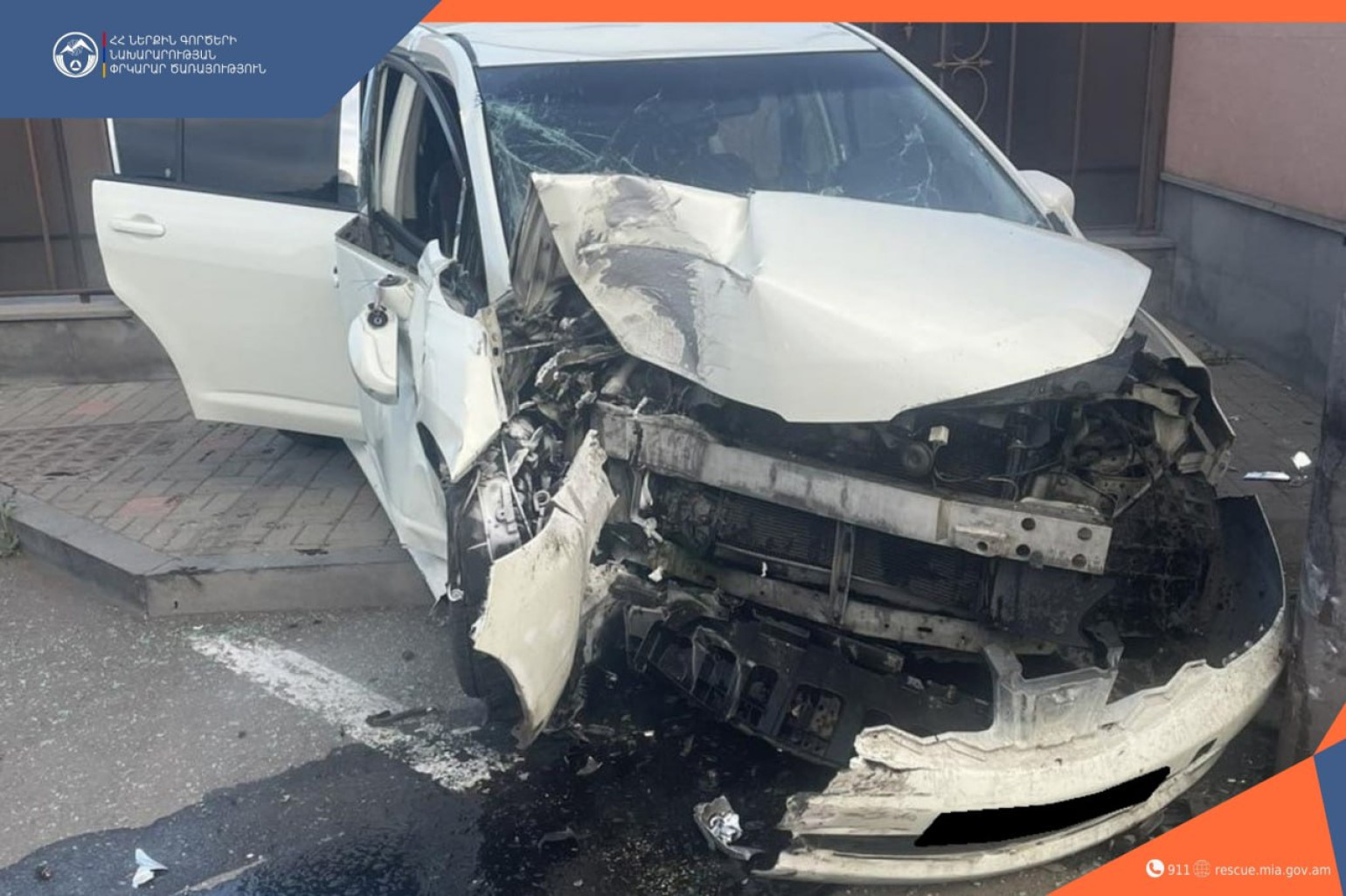Պարզվել է, որ «Nissan» մակնիշի ավտոմեքենան դուրս է եկել ճանապարհի երթևեկելի գոտուց և բախվել սյանը։