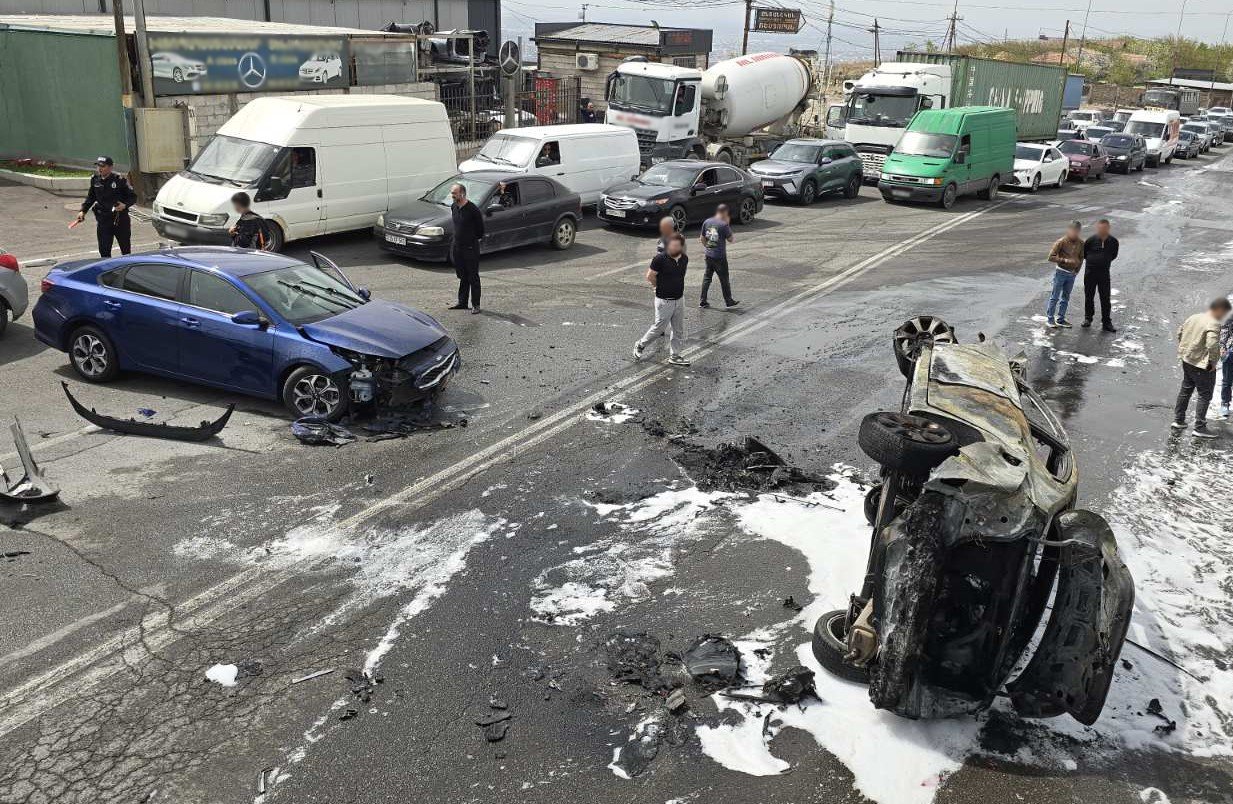 Խոշոր ավտովթար՝ Դավիթ Բեկի փողոցում․ իրար են բախվել 3 ավտոմեքենա, մեկում հրդեհ է բռնկվել