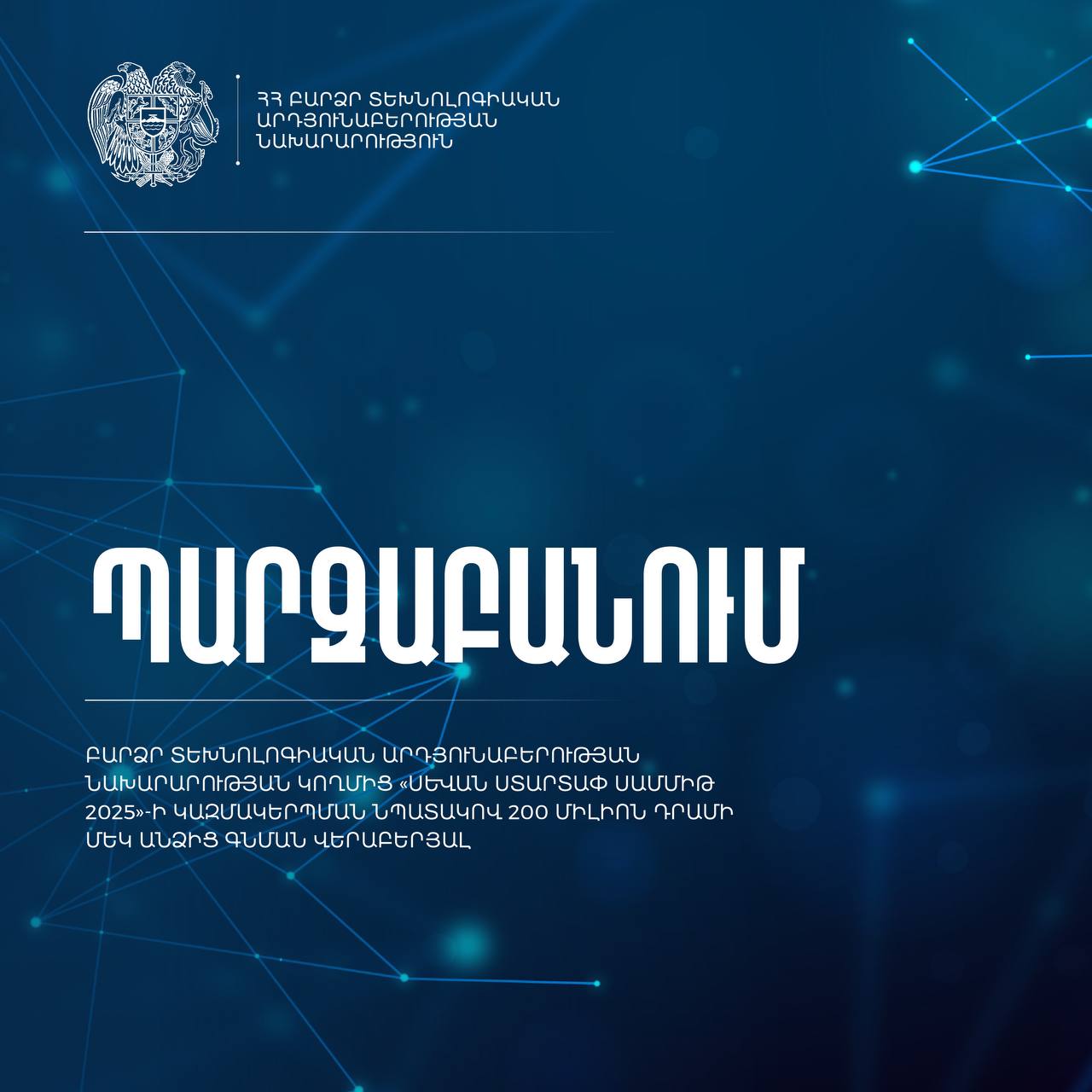 ԲՏԱՆ-ից ArmLur.am-ին պարզաբանում են տվել Բարձր տեխնոլոգիական արդյունաբերության նախարարության կողմից «Սևան Ստարտափ Սամմիթ 2025»-ի կազմակերպման նպատակով 200 միլիոն դրամի մեկ անձից գնման վերաբերյալ․
