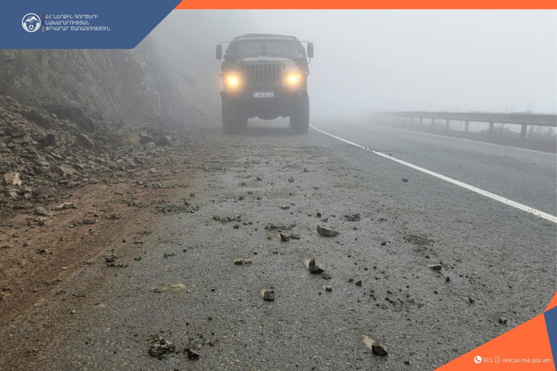 Փրկարարները հեռացրել են թափված քարերը դարձնելով ավտոճանապարհը երկկողմանի երթևեկելի։