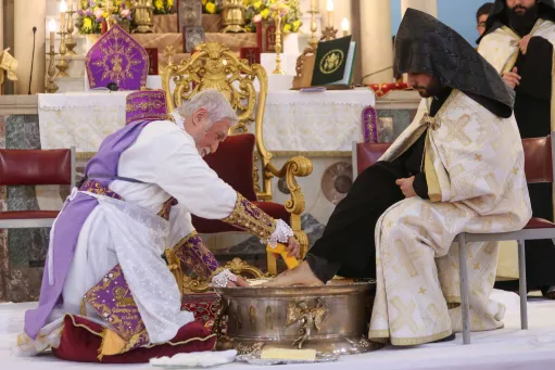 Մայր Տաճարին մէջ Նորին Սրբութիւնը հանդիսապետեց կարգն ոտնլուային, որուն ընթացքին, հետեւելով մեր Տիրոջ Յիսուս Քրիստոսի օրինակին, լուաց երկու միաբան հայրերու եւ տասը դպրեվանեցիներու ոտքերը։ Արարողութեան երգեցողութիւնը կատարեց Դպրեվանքի աշակերտները։ Աւարտին, Հայրապետը փոխանցեց օրուան խորհուրդն ու պատգամը։
