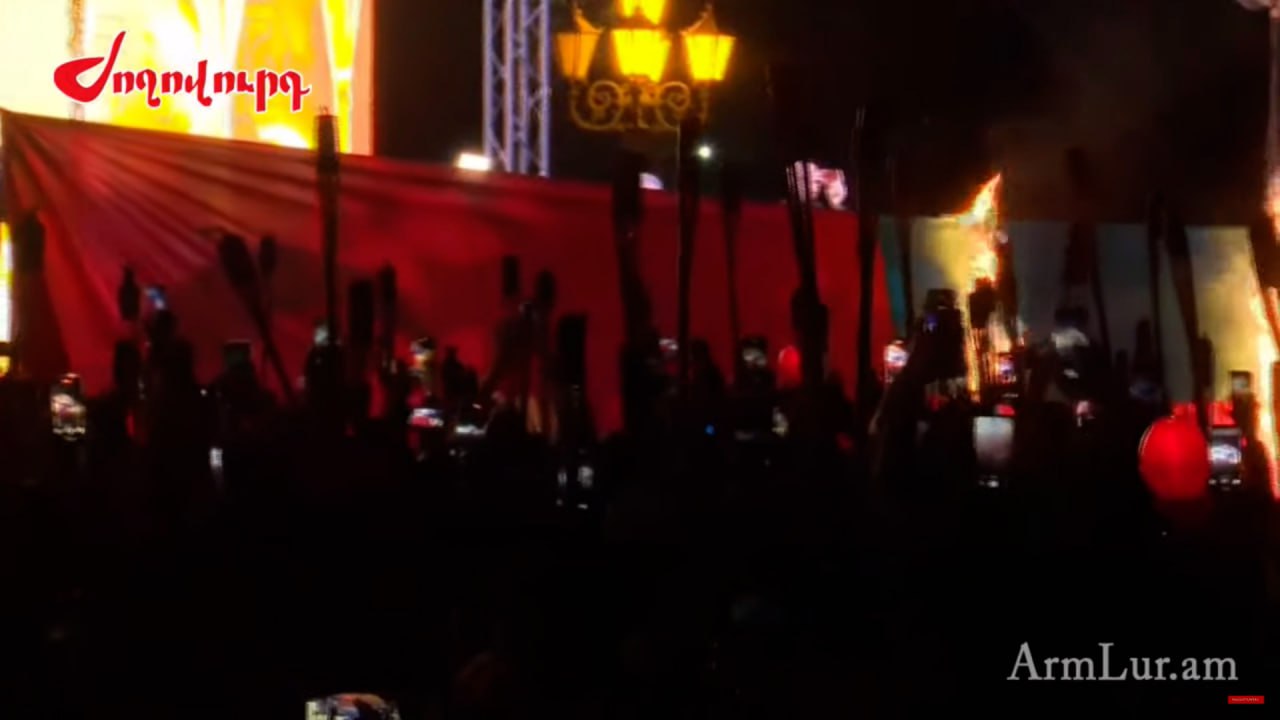 Հրապարակում այրվեցին Թուրքիայի և Ադրբեջանի դրոշները։