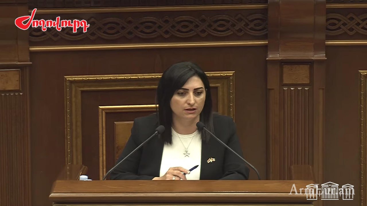 Ամբիոնից ելույթ է ունենում ԱԺ պատգամավոր Թագուհի Թովմասյանը։