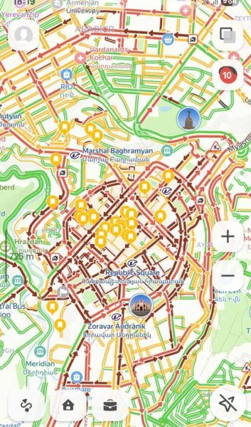 Այս պահին մայրաքաղաքում կրկին 10 բալանոց խցանում է, փողոցները հեղեղվել են, ինչպես վերջին շրջանում լինում է ամեն անձրեւից հետո: