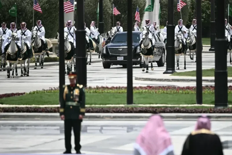 Պետական այցով Սաուդյան Արաբիայի թագավորությունում գտնվող ԱՄՆ նախագահ Դոնալդ Թրամփը ժամանել է Էր Ռիադի ալ-Յամամա թագավորական արքունիք։ «Արմենպրես»-ի փոխանցմամբ՝ այս մասին հայտնում է սաուդական լրատվական գործակալությունը (SPA)։ Թրամփի մեքենան ուղեկցել են ձիեր՝ հեծյալներով, որոնք կրել են Սաուդյան Արաբիայի և ԱՄՆ-ի դրոշներ։