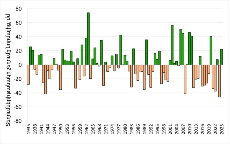 Կլիմայի փոփոխության գնահատականները ցույց են տալիս, որ ապրիլ ամսվա միջին ջերմաստիճանը Հայաստանում բարձրացել է 1.9 °C-ով 1935-2025 թթ․ ժամանակահատվածում, իսկ տեղումները նվազել են մոտ 7,5 %-ով։