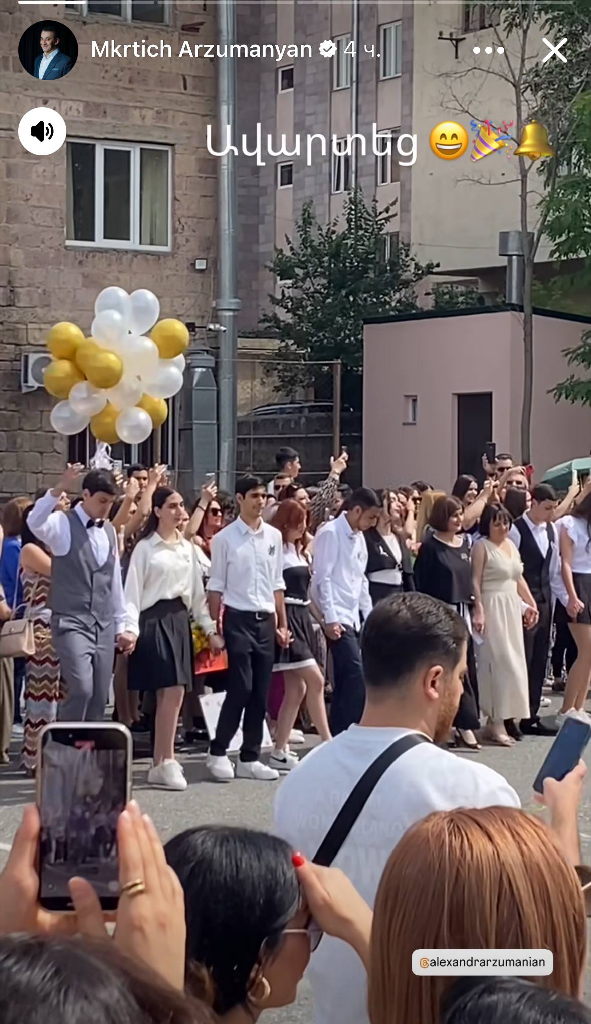 Սոցցանցում կիսված լուսանկարներից պարզ է դառնում, որ այսօր դպրոցն ավարտել է նաև հայտնի և սիրված դերասան Մկրտիչ Արզումանյանի որդին՝ Ալեքսանդր Արզումանյանը, ով ևս ընտրել է դերասանի մասնագիտությունը։