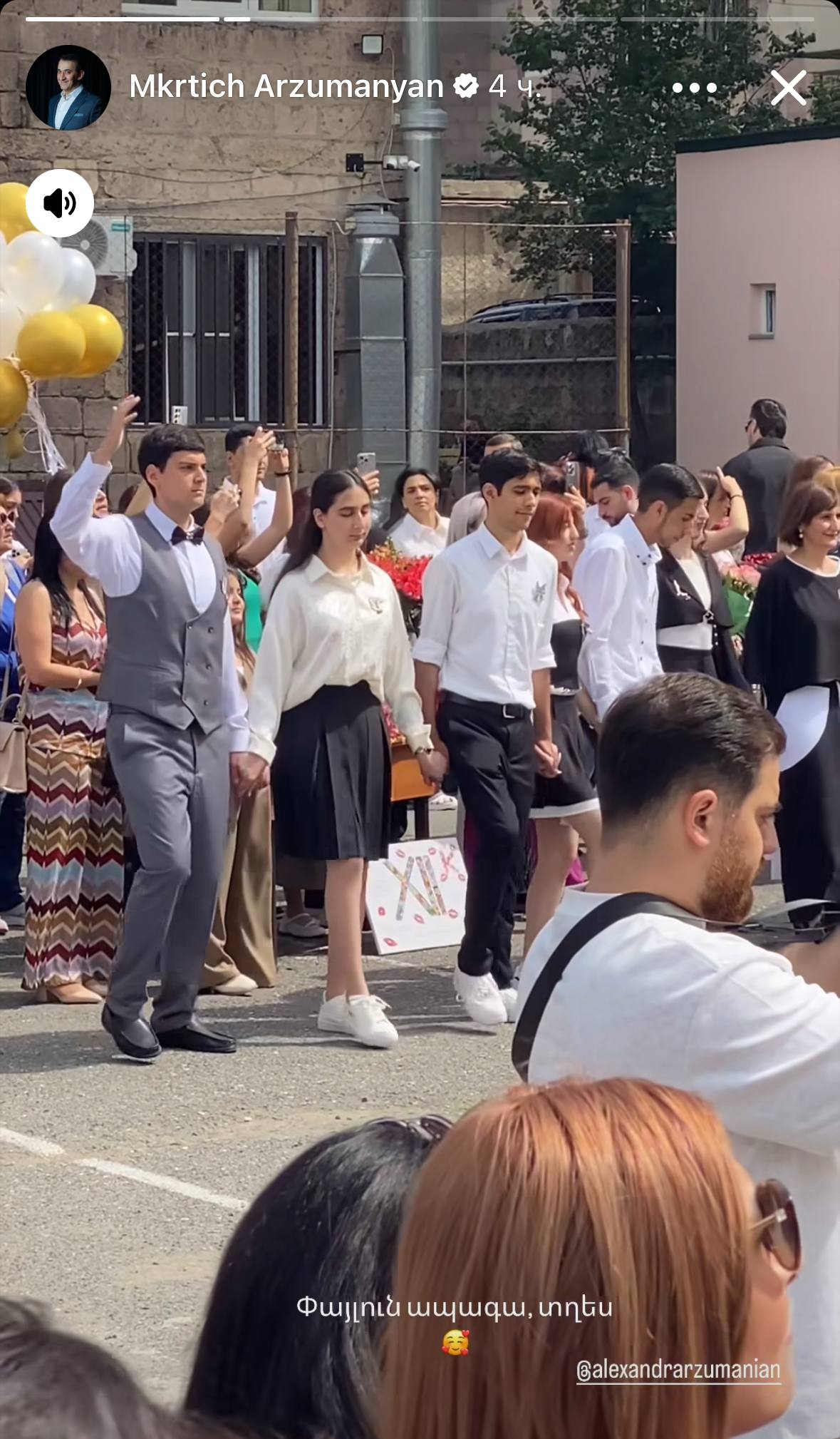 Սոցցանցում կիսված լուսանկարներից պարզ է դառնում, որ այսօր դպրոցն ավարտել է նաև հայտնի և սիրված դերասան Մկրտիչ Արզումանյանի որդին՝ Ալեքսանդր Արզումանյանը, ով ևս ընտրել է դերասանի մասնագիտությունը։
