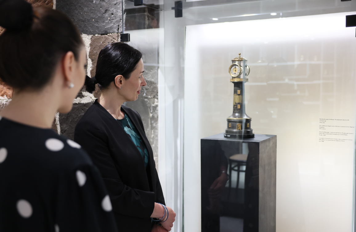 Նախարարը շրջել է ցուցասրահում, հետաքրքրվել ժամացույցների պատմությամբ, որը ներկայացրել է թանգարանի տնօրեն Սյուզաննա Խոջամիրյանը: