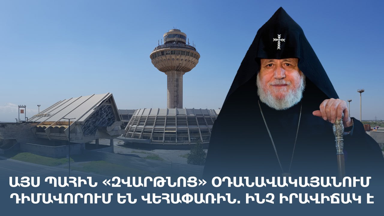 Այս պահին «Զվարթնոց» օդանավակայանում դիմավորում են Վեհափառին: