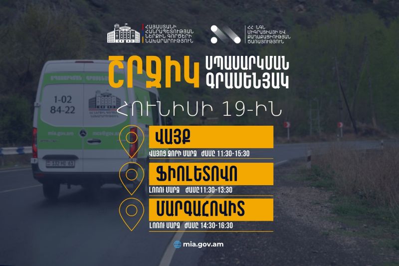 ՆԳՆ շրջիկ սպասարկման գրասենյակները ծառայություններ կմատուցեն Վայոց ձորի և Լոռու մարզերում