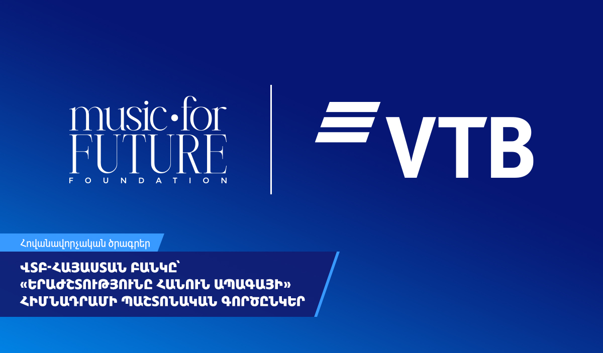 ՎՏԲ–Հայաստան Բանկը միացել է «Երաժշտությունը հանուն ապագայի» հիմնադրամին որպես գործընկեր։ Բանկը կաջակցի հիմնադրամի հիմնական ծրագրերին, այդ թվում՝ մշակութային և կրթական նախագծերի զարգացում, համերգների կազմակերպում և երիտասարդ երաժիշտների համար կրթաթոշակների տրամադրում։ Գործընկերությունը նպատակ ունի խթանել երաժշտական արվեստը և աջակցել տաղանդներին Հայաստանում։