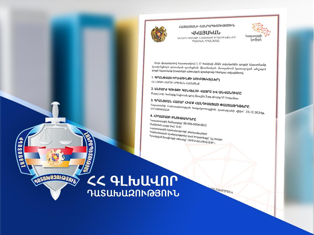 Հիշեցնենք, որ Հակակոռուպցիոն դատարանը 2024 թվականի դեկտեմբերի 23-ին բավարարել էր Գլխավոր դատախազության պետական շահերի պաշտպանության վարչության հայցը: Գլխավոր դատախազությունը պետական շահերի պաշտպանության գործառույթի շրջանակներում ներկայացված հայցով դատարանից խնդրել էր անվավեր ճանաչել Լոռու մարզի Ջրաշեն բնակավայրի 2 փողոց, 1/1 հասցեում գտնվող՝ 0.07 հա մակերեսով հողամասի աճուրդը և կիրառել անվավերության հետևանքներ: