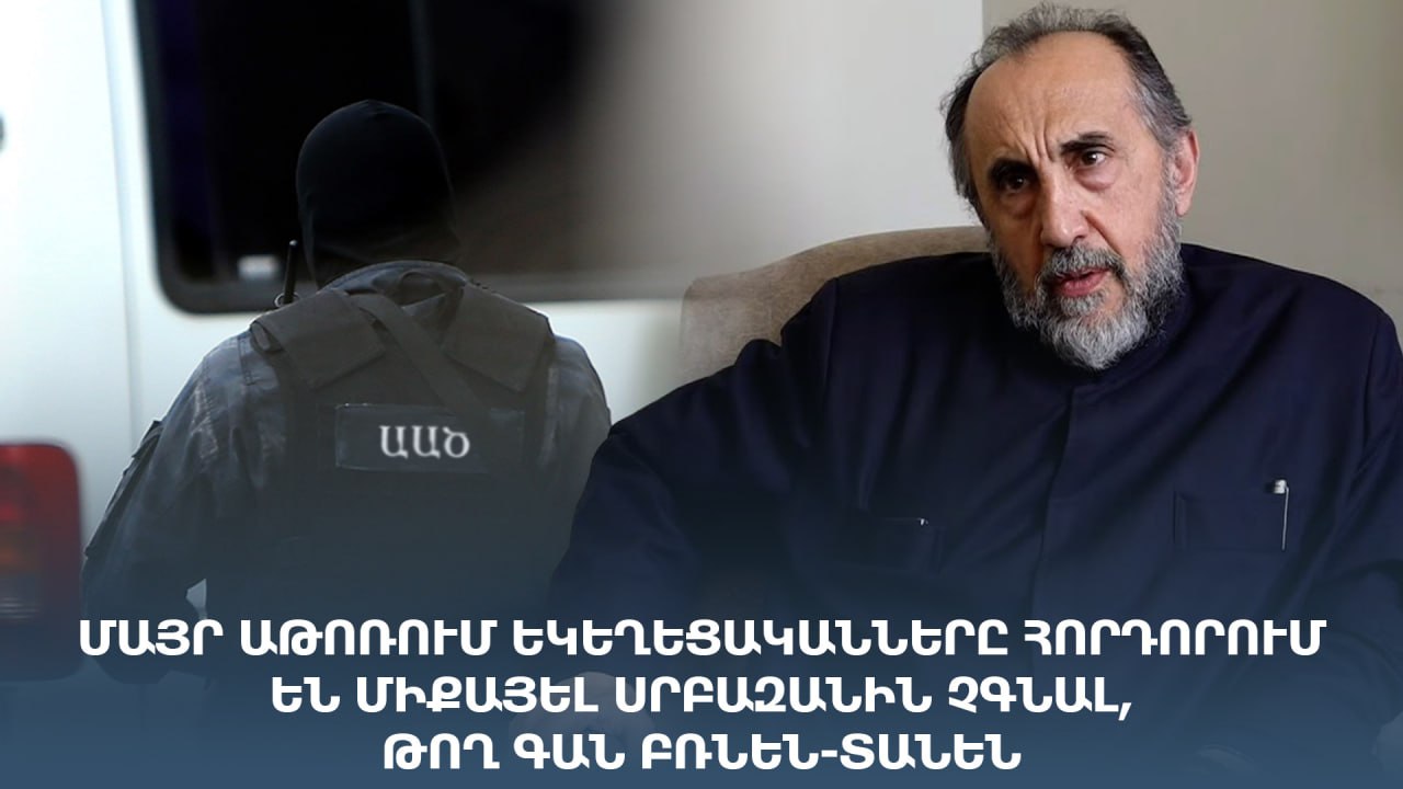Ուղիղ. Մայր Աթոռում եկեղեցականները հորդորում են Միքայել Սրբազանին չգնալ, թող գան բռնեն-տանեն Հուն 27,2025 11:28 ՀԵՏԵՎԵՔ ՄԵԶ Telegram-ՈՒՄ Այս պահին Մայր Աթոռում իրավիճակը լարված է, ԱԱԾ մտել է Վեհարան փորձում են Աջապահյանին ձերբակալել