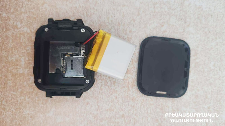 Զննության արդյունքում հանձնուքում առկա ռեհանի և սամիթի կապոցի միջից ծառայողները հայտնաբերել են սմարթ ժամացույց։