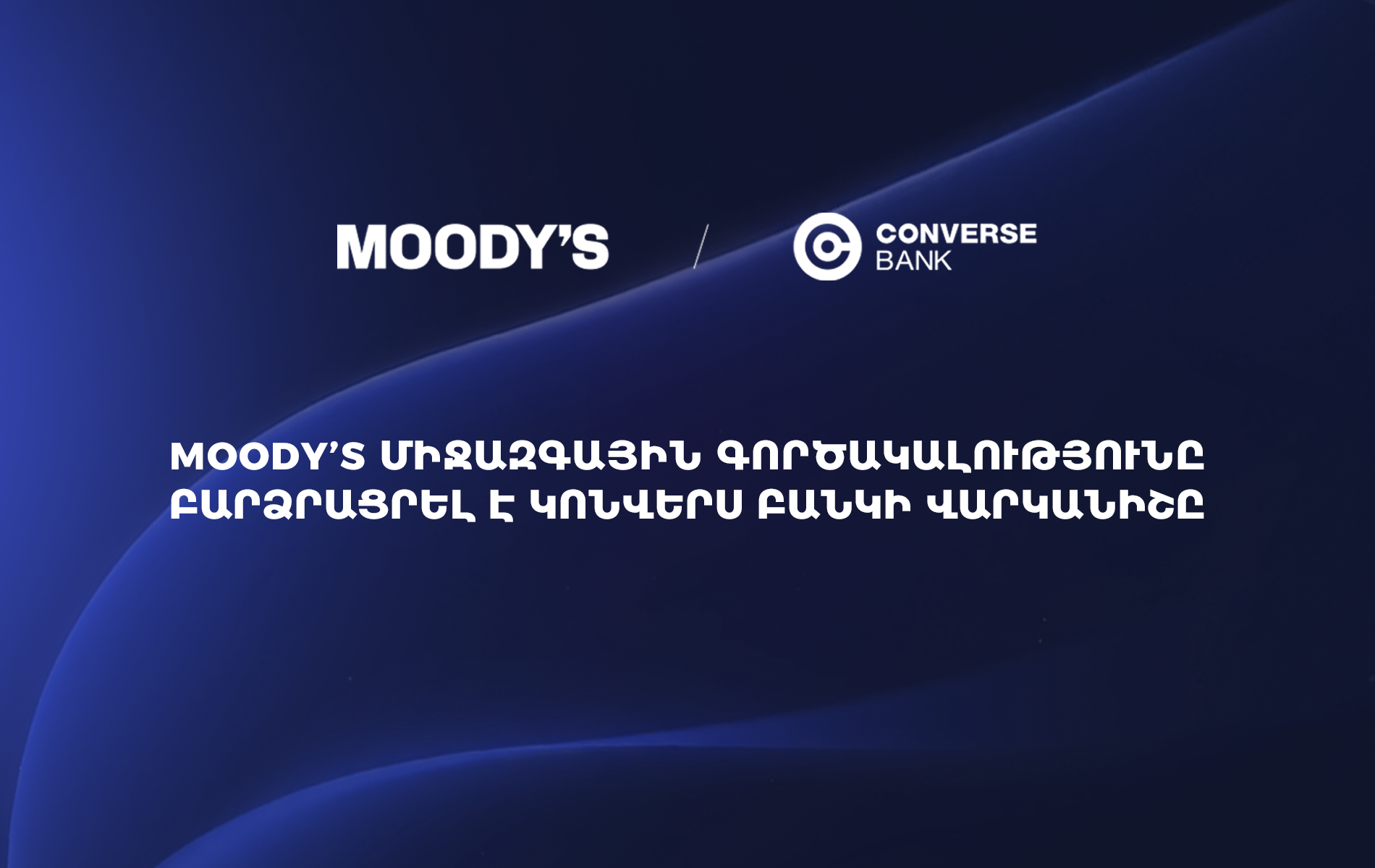 Moody’s Ratings has upgraded Converse Bank CJSC’s long-term local and foreign currency bank deposit ratings to Ba3 from B1, aligning the Bank’s rating with Armenia’s sovereign rating.