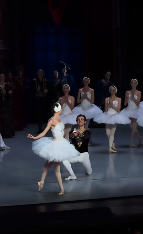 Համացանցում երեկվանից տարածվում է գեղեցիկ տեսանյութ, որտեղ «Կարապի լիճ» բալետի ավարտից հետո Օպերայի եւ բալետի թատրոնի արտիստ Անդրո Ղուկասյանը բեմում ամուսնության առաջարկ է անում իր սիրելիին. նրանք երկուսն էլ մարմնավորում էին աշխարհահռչակ բալետի գլխավոր հերոսներին։