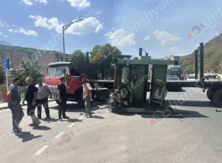 Այսօր՝ հուլիսի 16-ին, արտակարգ դեպք տեղի ունեցել Սյունիքի մարզում։ Ժամը 14։20-ի սահմաններում Կապան քաղաքի Գործարանային փողոցում Երևանի բնակիչ Արման Հ․-ի վարած «КамАЗ» մակնիշի կցորդիչով բեռնատարից ընթացքի ժամանակ մետաղյա հաստոցը ընկել է և վնասել նաև մեքենայի խցիկի հատվածը։