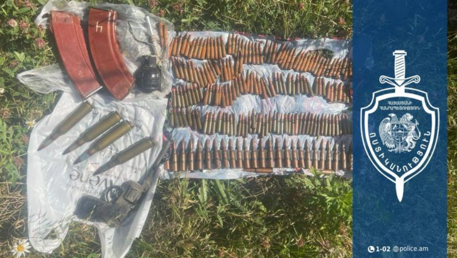 Մեկնած օպերատիվ-քննչական խումբը նշված տարածքում հայտնաբերել է պոլիէթիլենային պարկ, որի մեջ կար ինքնաշեն թմբուկավոր ատրճանակ, տարբեր տրամաչափերի և հրազենների 192 փամփուշտ, նռնակ, նռնակի 2 պայթուցիչ, ինքնաձիգի 2 պահեստատուփ: