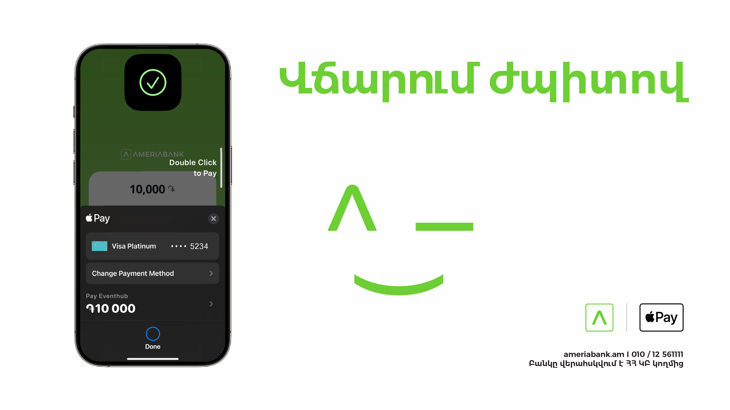Նշենք, որ Ամերիաբանկի vPOS ծառայությունից օգտվող բոլոր բիզնես հաճախորդները կարող են ակտիվացնել Apple Pay-ով վճարումների ընդունման հնարավորությունը և սկսել այս եղանակով վճարումներ ընդունել իրենց օնլայն խանութներում ու հավելվածներում: