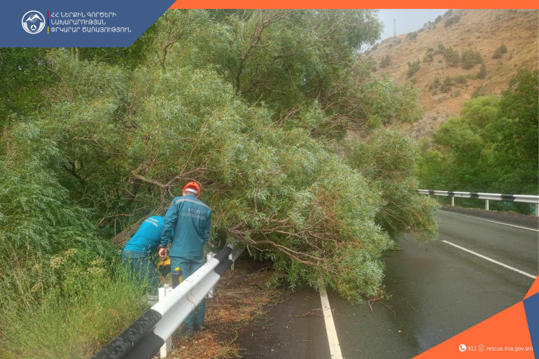 Հուլիսի 29-ին, ժամը 16։21-ին Վայոց ձորի մարզային փրկարարական վարչության ճգնաժամային կառավարման կենտրոն ահազանգ է ստացվել, որ Երևան-Մեղրի ավտոճանապարհին ծառը կոտրվել և ընկել է երթևեկելի հատված․ երթևեկությունը դարձել է միակողմանի։