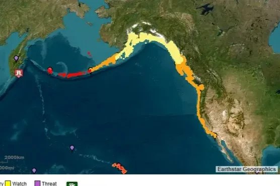Նախազգուշացոմներ են տարածվել նաև ԱՄՆ Կալիֆոռնիայի, Ալյասկայի, Հավայիի, Կանադայի Բրիտանական Կոլումբիայի նահանգի, Չինաստանի Շանհայի և Ճեծյանի նահանգների համար։ The Associated Press գործակալության հաղորդմամբ՝ Հավայիում ցածրադիր վայրերի բնակիչներին տարհանման կոչ է արվել։ Սա համարվում է 2011 թվականից ի վեր ամենահզոր երկրաշարժը մոլորակի վրա։
