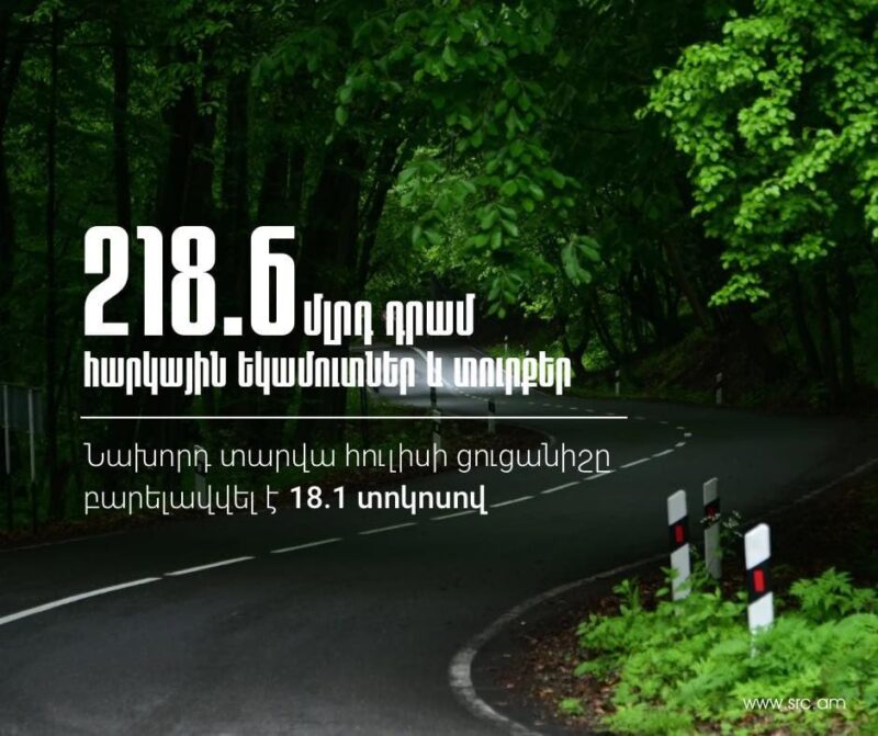 2025 թվականի հուլիս ամսվա ընթացքում ՀՀ պետական եկամուտների կոմիտեն ապահովել է 218.6 մլրդ դրամ հարկային եկամուտներ և պետական տուրքեր, ինչը նախորդ տարվա նույն ժամանակաշրջանի ցուցանիշից ավելի է 33.5 մլրդ դրամով կամ 18.1%-ով: