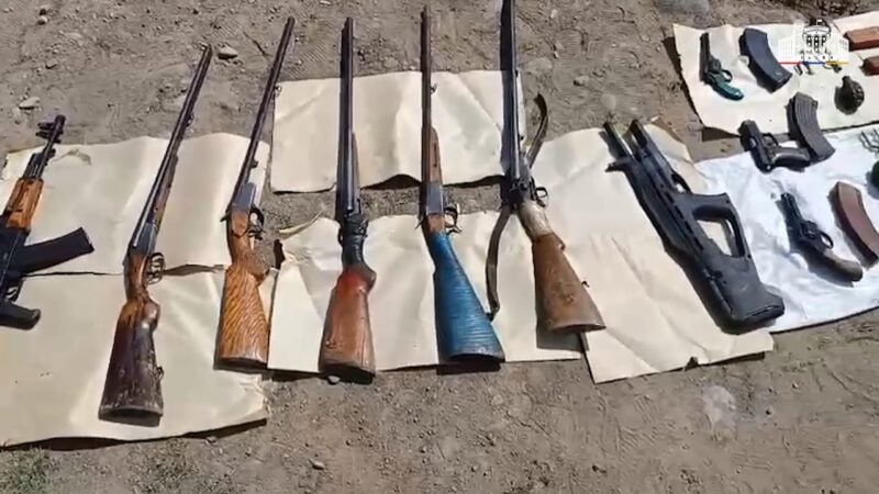 Նախաձեռնվել է քրեական վարույթ, որի շրջանակում կատարված զննությամբ նված վայրում հայտնաբերվել է «Կալաշնիկովի» ինքնաձիգ, տարբեր տեսակի 3 ատրճանակ, 6 հրացան, նռնակներ, պայթուցիչներ, ինքնաձիգի դատարկ փամփշտատուփեր, ազդանշանային 4 ական, գնդացիրի՝ 100 և ինքնաձիգի 118 փամփուշտ: