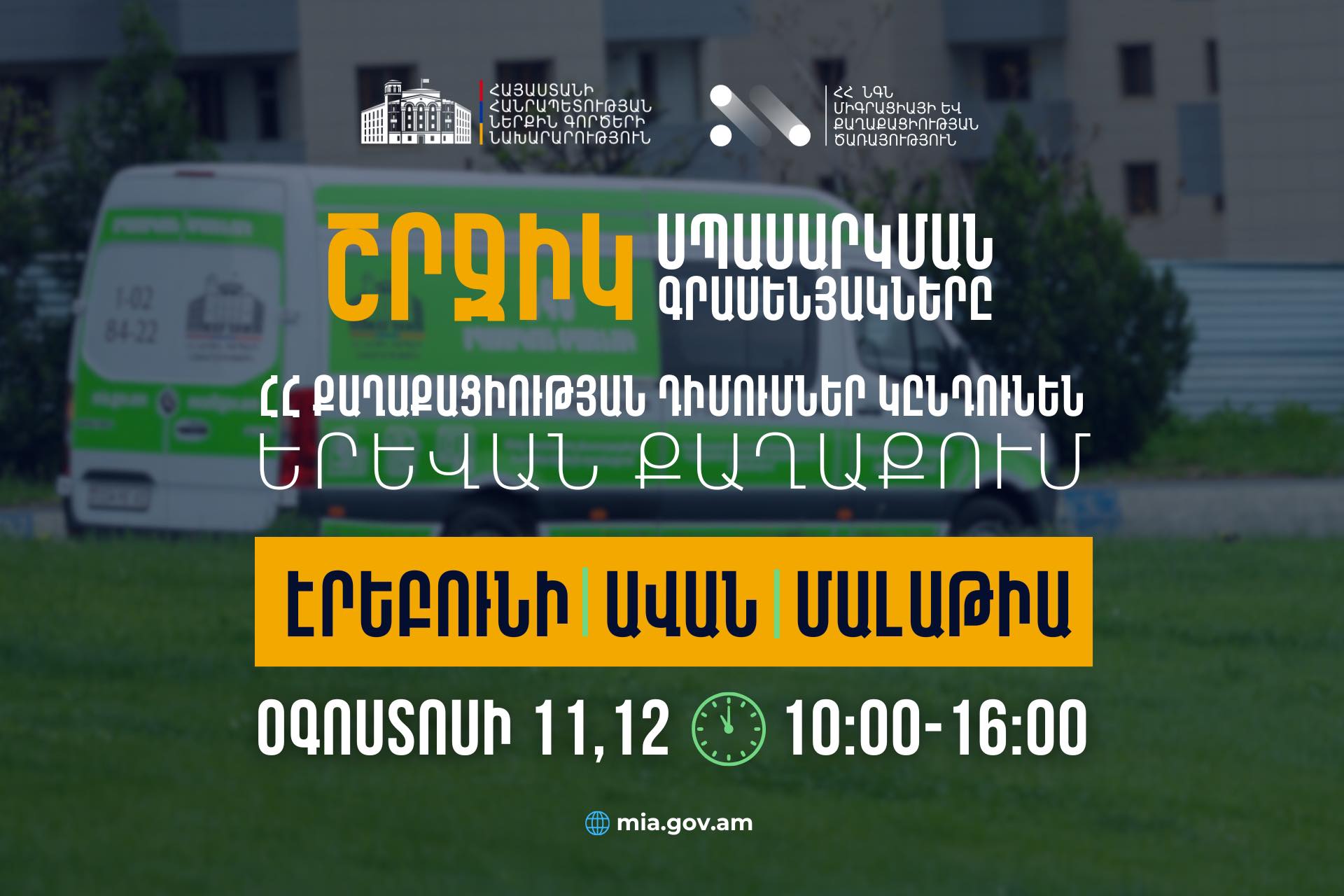 ՆԳՆ շրջիկ սպասարկման գրասենյակները ՀՀ քաղաքացիության դիմումներ կընդունեն Երևան քաղաքում: Այս մասին հայտնել են ՆԳՆ-ից: