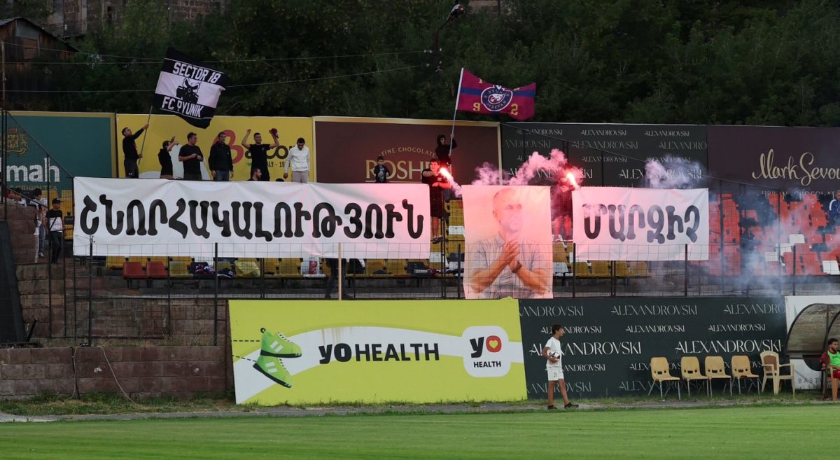 «Սեկտոր 18» ֆան ակումբի անդամները պարզել են պաստառ, որի վրա գրված է` «Շնորհակալություն, մարզիչ»: Երկրպագուները նաև Մելիքյանի նկարով են պաստառ պարզել: Մելիքյանը Գյումրիի քաղաքային ստադիոնում հետևել է հանդիպմանը։