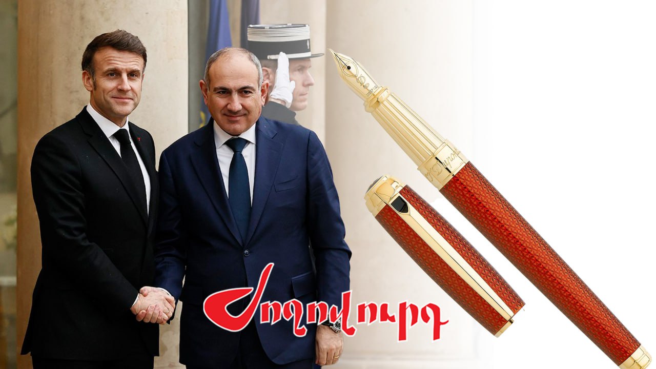 Dupont ապրանքանիշի գրիչ է նվիրել Մակրոնը Ձաշինյանին Ելիսեյան պալատում, Գրիչը եղել է անհատական պատվեր, այն պատրաստված է կապույտ և ոսկեգույն գույներով։ Փաշինյանի համար հատուկ պատվիրված գրիչն արժեցել է 331 հազար 870 դրամ։