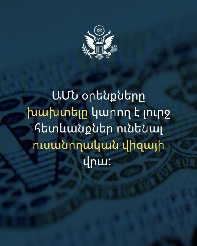 ՀՀ-ում ԱՄՆ դեսպանատունը հայտնում է, որ ԱՄՆ օրենքները խախտելը կարող է լուրջ հետևանքներ ունենալ ուսանողական վիզայի վրա։ Եթե ձերբակալվել եք կամ խախտել ԱՄՆ որևէ օրենք, ձեր վիզան կարող է հետ կանչվել, իսկ ձեզ կարող են արտաքսել ու զրկել հետագայում ԱՄՆ վիզա ստանալու հնարավորությունից։