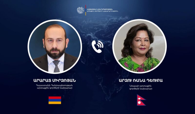 ՀՀ ԱԳ նախարար Արարատ Միրզոյանը հեռախոսազրույց է ունեցել Նեպալի ԱԳ նախարար Արզու Ռանա Դեուբայի հետ։