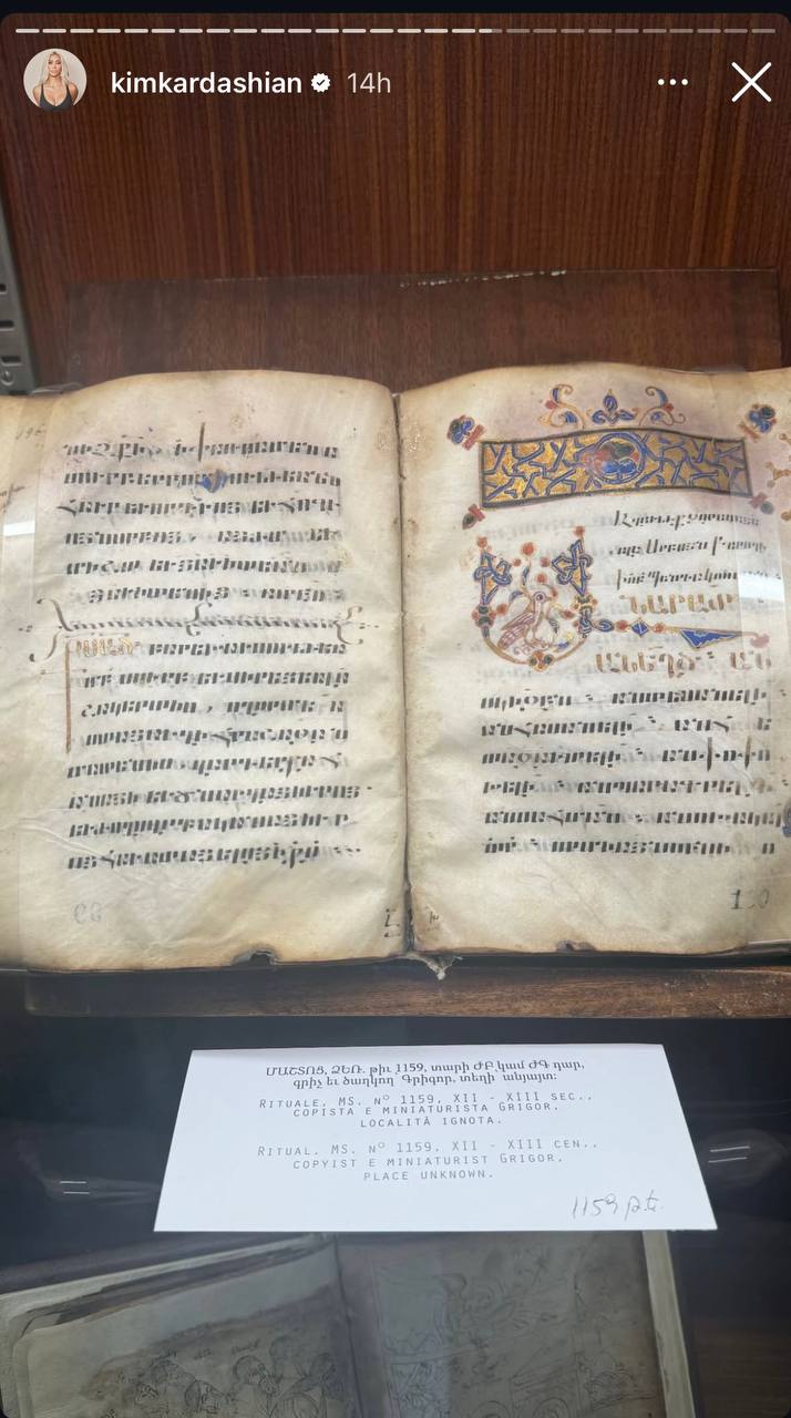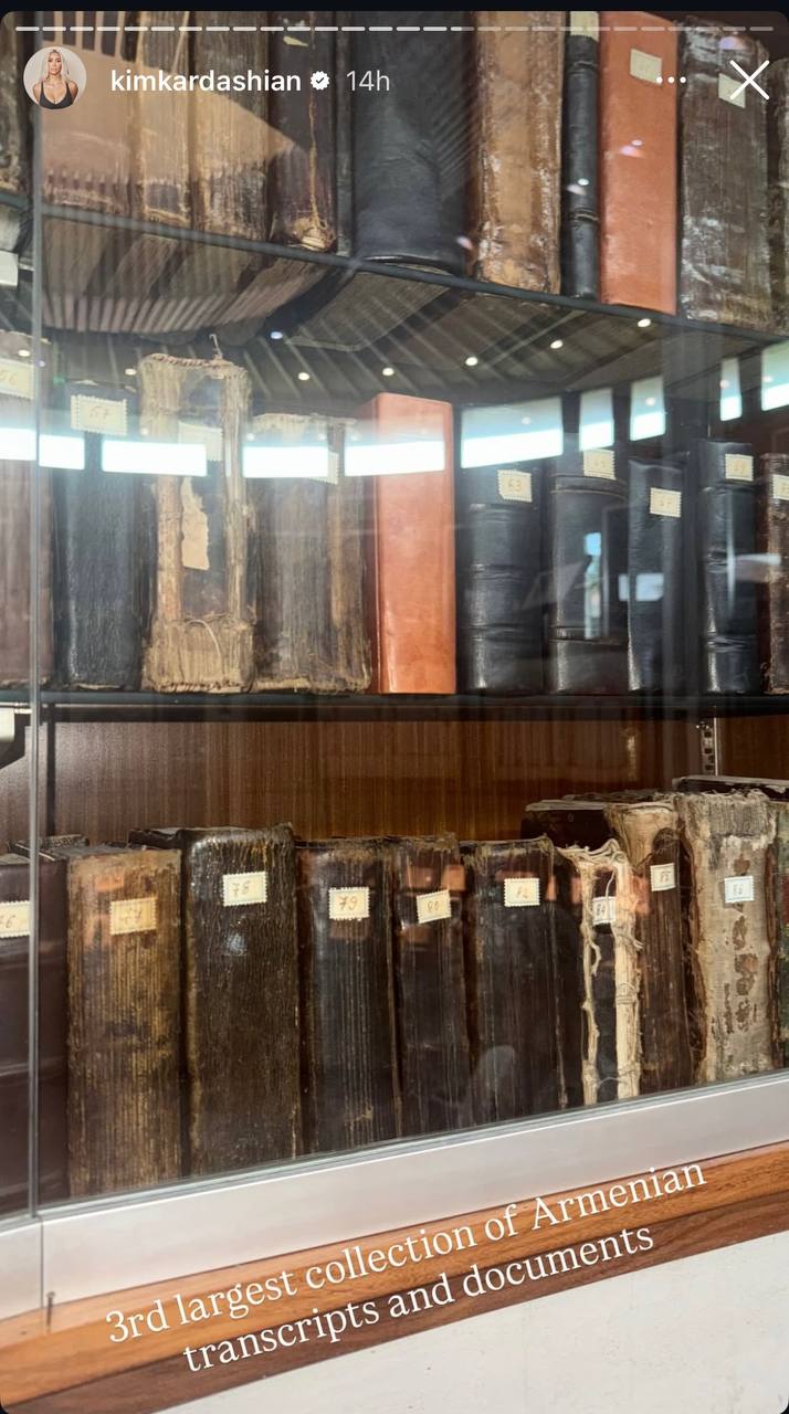 Ամերիկյան հեռուստաաստղ Քիմ Քարդաշյանը այցելել է Վենետիկի Սուրբ Ղազար (San Lazzaro degli Armeni) հայկական կղզի և Instagram-ի Stories-ում հրապարակած կադրերով իր շուրջ 355 միլիոն հետևորդներին ներկայացրել հայկական հարուստ ժառանգությունը։