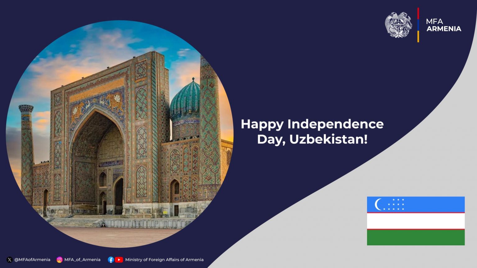 ՀՀ արտաքին գործերի նախարարությունը շնորհավորել է Ուզբեկստանի կառավարությանն ու ժողովրդին՝ Անկախության օրվա առթիվ։