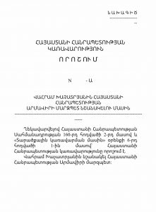 «Ղեկավարվելով Հայաստանի Հանրապետության Սահմանադրության 160-րդ հոդվածի 2-րդ մասով և «Տարածքային կառավարման մասին» օրենքի 6-րդ հոդվածի 1-ին մասով՝ Հայաստանի Հանրապետության կառավարությունը որոշում է. Վահրամ Խաչատրյանին նշանակել Հայաստանի Հանրապետության Արմավիրի մարզպետ»,- ասված է որոշման մեջ։