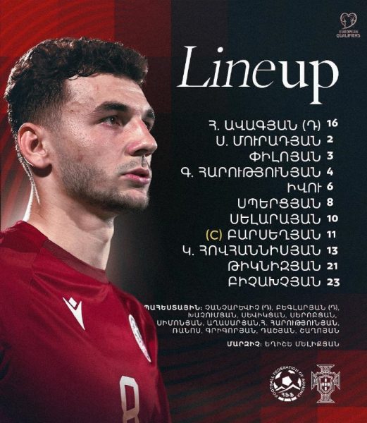 Ֆուտբոլի աշխարհի առաջնության ընտրական փուլի առաջին տուրի Հայաստան-Պորտուգալիա խաղի մեկնարկային կազմերը հայտնի են: