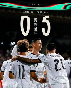 Երեկ տեղի ունեցավ Հայաստան-Պորտուգալիա ֆուտբոլային հանդիպումը, որն ավարտվեց 5-0 հաշվով հօգուտ Պորտուգալիայի։