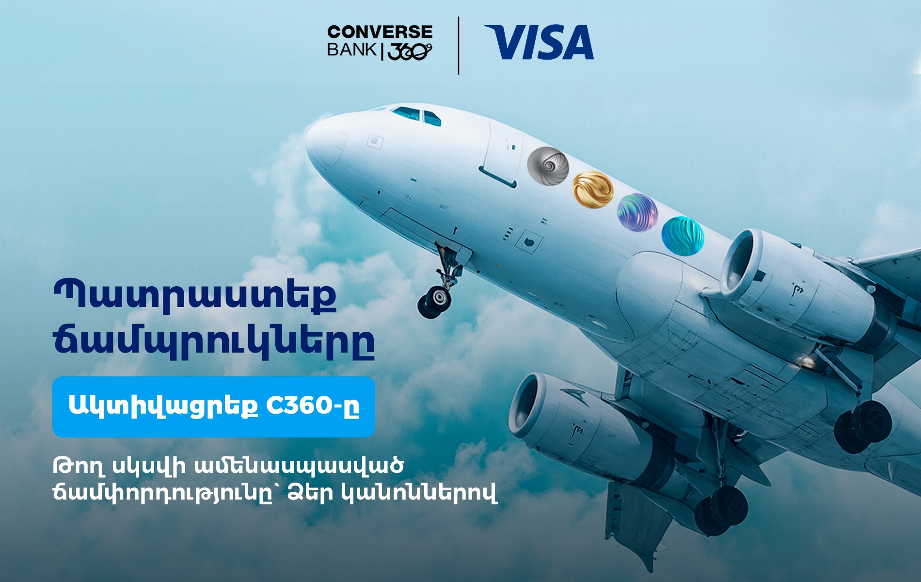Կոնվերս Բանկը հայտարարում է խրախուսման արշավ Բանկի C360 Neo, Ultra, Elite, Nektar փաթեթների ներքո Visa քարտապանների համար: Դրան կարող են մասնակցել 18 տարին լրացած, ՀՀ ռեզիդենտ ֆիզիկական անձ այն հաճախորդները, ովքեր արդեն օգտվում են նշված փաթեթներից որևէ մեկից կամ արշավի ընթացքում կակտիվացնեն այն: