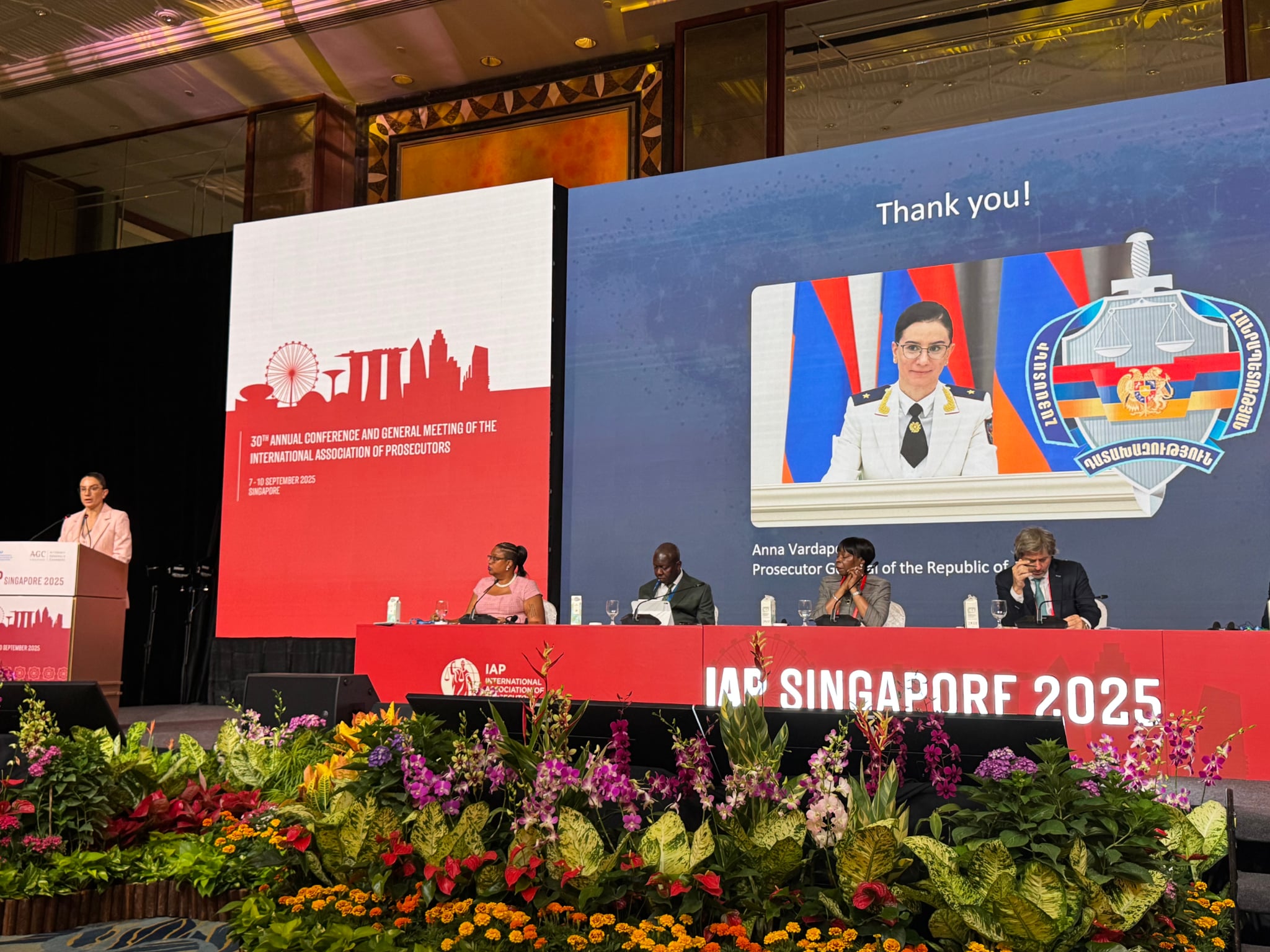 Հայաստանի Հանրապետության գլխավոր դատախազ Աննա Վարդապետյանն այսօր՝ Սինգապուրի Հանրապետությունում կայացած՝ Դատախազների միջազգային ասոցիացիայի (ԴՄԱ) տարեկան համաժողովի ընթացքում, հանդես է եկել «Քրեական գործերով միջազգային-իրավական համագործակցությունը. հաղորդակցության ուժը, հայաստանյան հեռանկարը» թեմայով ելույթով: