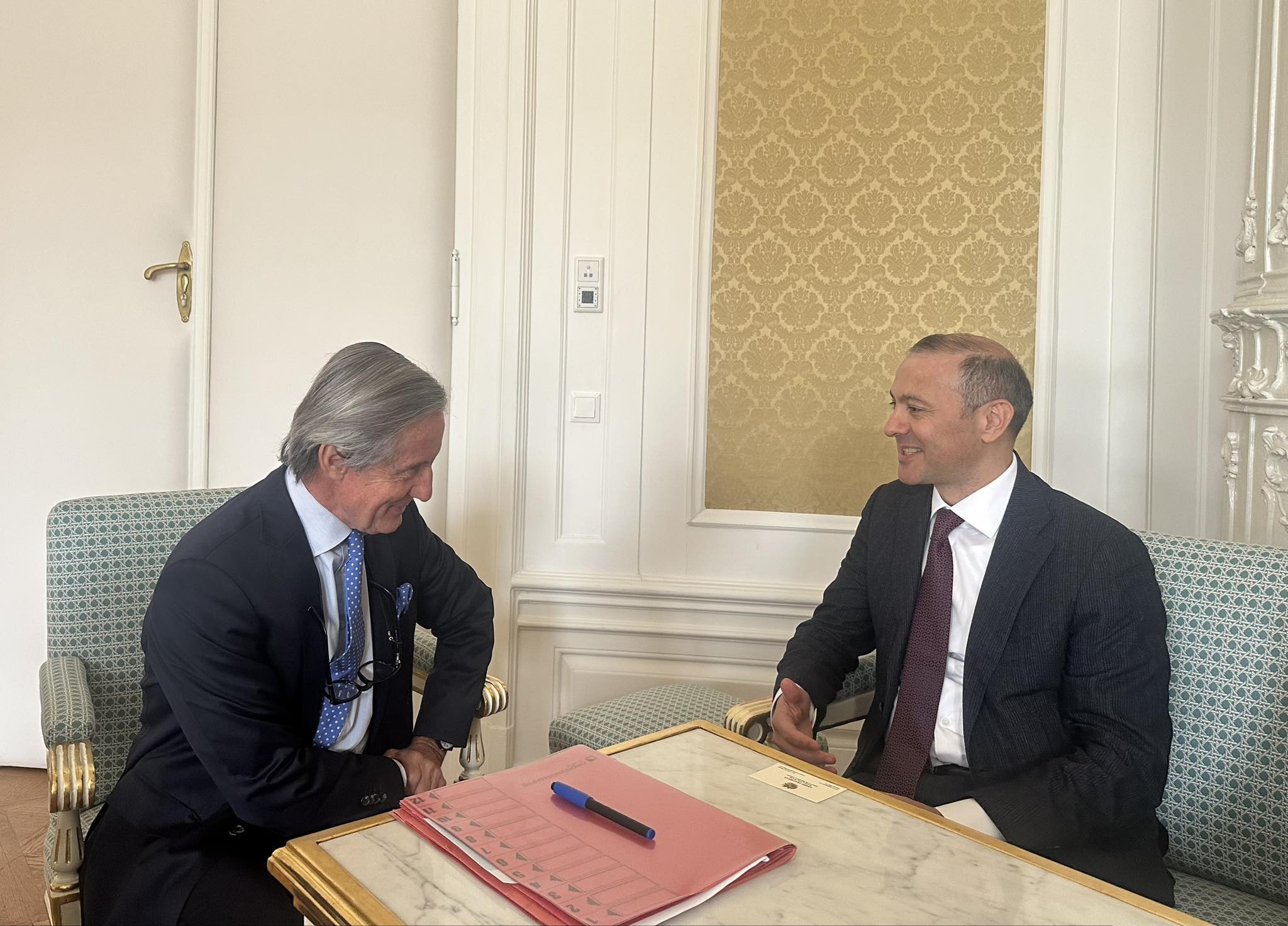 Վիեննայում ՀՀ ԱԽ քարտուղարը հանդիպել է Ավստրիայի կանցլերի աշխատակազմի Գլոբալ հարցերով հատուկ ներկայացուցիչ Պետեր Լաունսկի հետ: