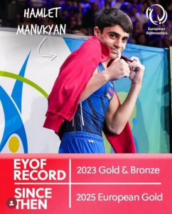 Հայաստանի սպորտային մարմնամարզության հավաքականի անդամ, Եվրոպայի չեմպիոն ու աշխարհի բացարձակ գավաթակիր Համլետ Մանուկյանի անվան տարր կավելանա մարմնամարզությունում: «Արմենպրես»-ի փոխանցմամբ` այս մասին հայտնում էեն Հայաստանի մարմնամարզության ֆեդերացիայից: