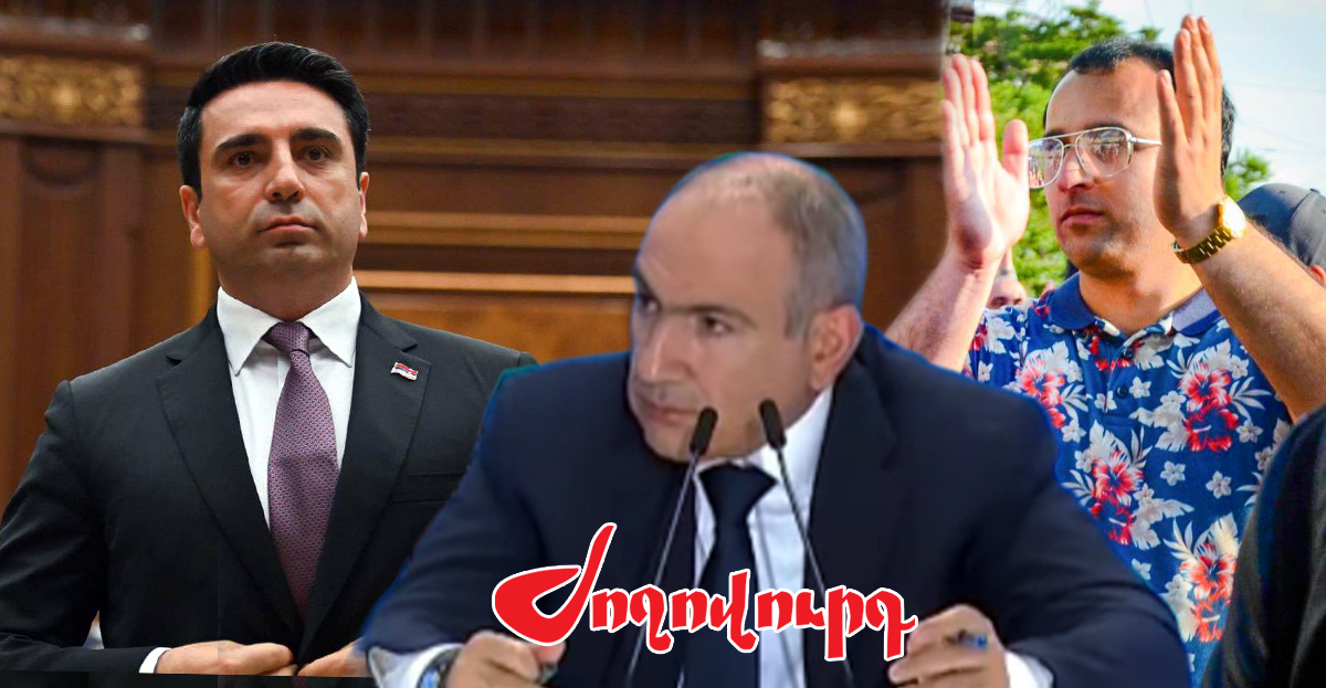 Արդյունքում, ՔՊ-ի ներսում ամեն ինչ վերածվել է ներպալատական ինտրիգների ու «ռազբորկաների», իսկ գլխավոր դիրիժորը Նիկոլ Փաշինյանն է, ով ստիպված է մի ձեռքով հեռու պահել «շիշ բռնողին», մյուսով՝ թիկունք կանգնել «թքող ԱԺ նախագահ»-ին»։