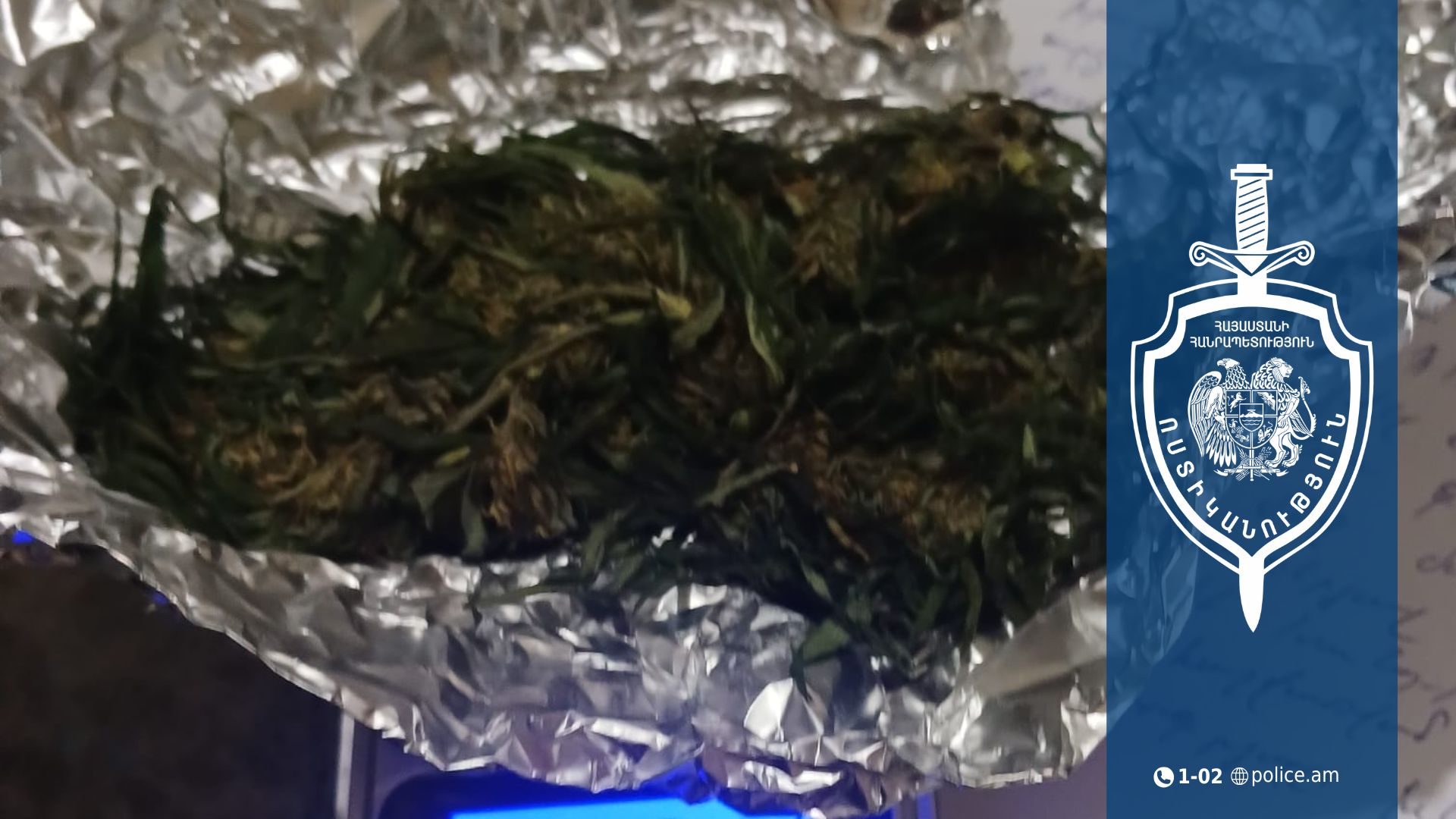 Նրա անձնական խուզարկությամբ հայտնաբերվել են 7 գրամից ավելի քաշով դեղնականաչավուն զանգվածով պոլիէթիլենային տոպրակ և փայլաթիթեղյա երեք փաթեթ՝ ընդհանուր 40 գրամից ավելի մարիխուանայի զանգվածով: