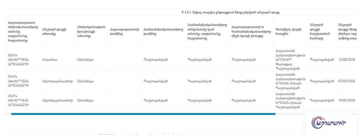 Տարեվերջին Ախվերդյանն ունեցել է 10 գույք։