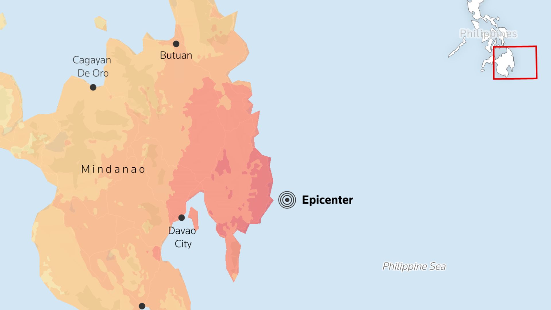 Մատի քաղաքում երկու մարդ է զոհվել, հայտնել է քաղաքացիական պաշտպանության ծառայությունը։ Սա վերջին տարիների ամենաուժեղ երկրաշարժերից մեկն է և տեղի է ունեցել երկու շաբաթ անց Սեբու կղզում 74 զոհ խլած երկրաշարժից հետո։